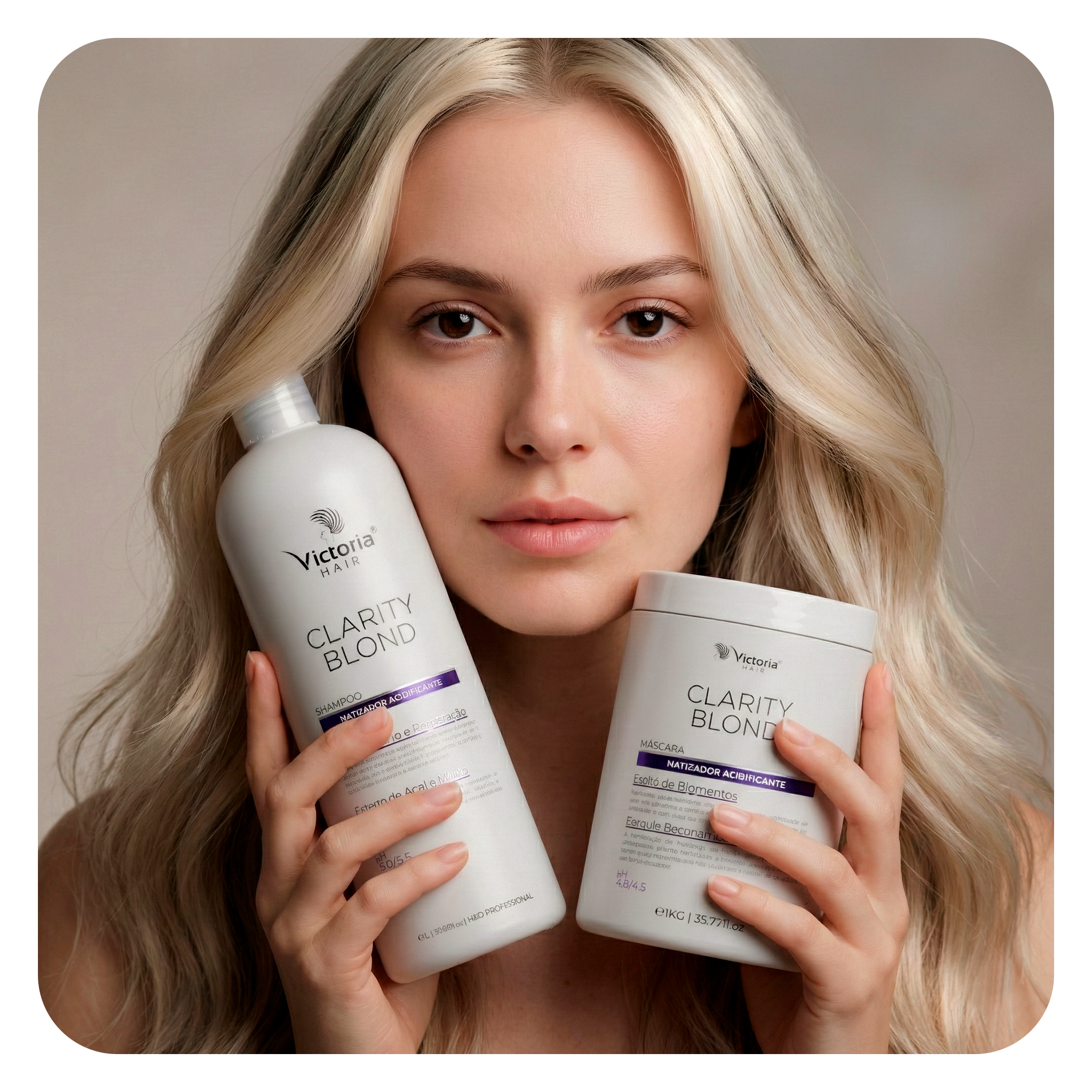 - Máscara Clarity Blond: Enriquecida com extrato de blueberry e açaí, a máscara nutre e hidrata profundamente os cabelos, proporcionando brilho e maciez. Além disso, sua fórmula ácida ajuda a equilibrar o pH dos fios, deixando-os mais saudáveis e resistentes.